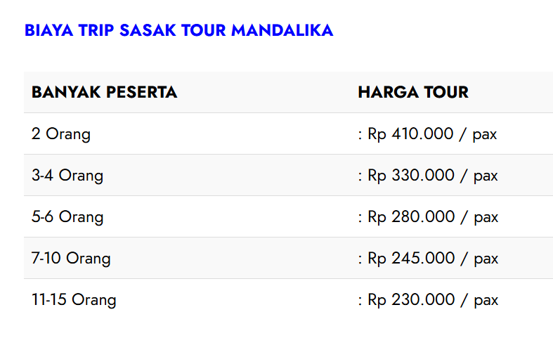 Paket Sasak Tour Mandalika berisikan paket wisata yang akan membawa anda mengeksplor keindahan destinasi budaya dan pantai bagian Selatan Pulau Lombok.