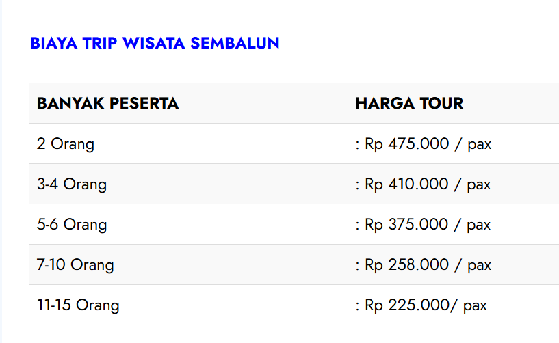 Harga dihitung per pax / per orang